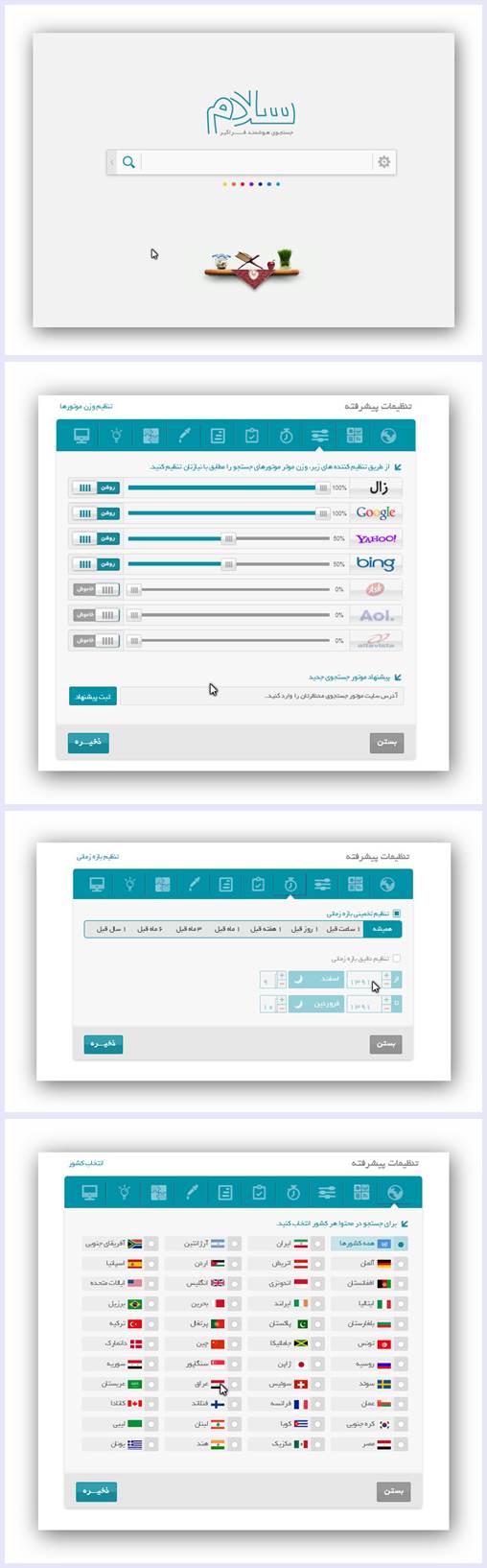 در ضمن حالا که سلام مدال طلای مسابقات رو برد بهتره کمی بیشتر با این جستجوگر آشنا شویم. سلام کاری از گروه دانش بنیان بیان می باشد. این جستجوگر به نظرم ظاهری ساده و در عین حال جذاب و کاربر پسند دارد و در قسمت تنظیمات امکانات زیادی رو در دسترس کاربر قرار می دهد.